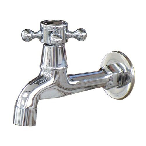 洗面水栓 蛇口 水栓金具 壁付用単水栓 シングルレバーハンドル シルバー(銀) [奥行13cm] INK-0302095H