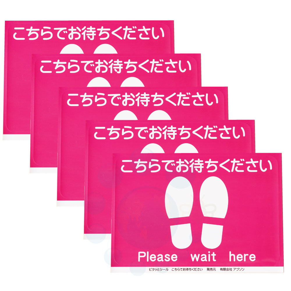何度も貼って剥せる [E]ソーシャルディスタンスシール こちらでお待ちください 5枚セット 9193 ゆうパケット対応