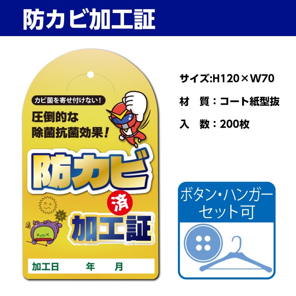 【加工証】 防カビ加工証 ボタン・ハンガーセット可