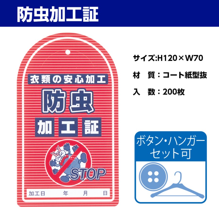 【加工証】 防虫加工証 ボタン・ハンガーセット可