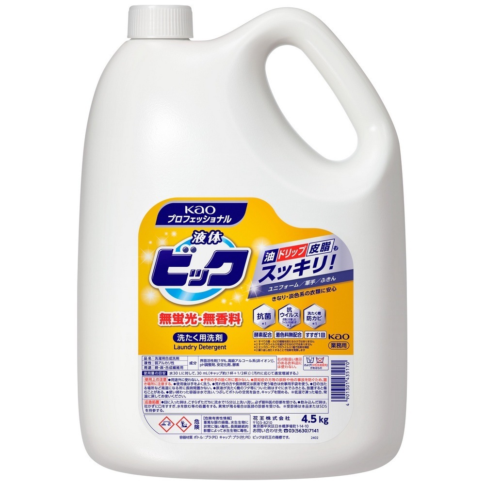 花王 洗たく洗剤 液体ビック 無蛍光・無香料タイプ 4.5kg×4本入●ケース販売お徳用【取り寄せ商品・即納不可】