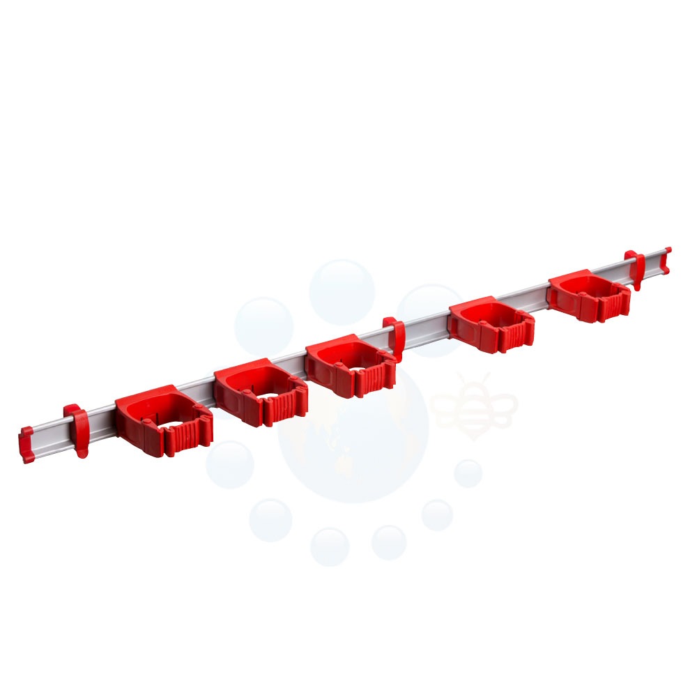 ワンタッチ モップ 壁面収納 病院 商業施設 ツールフレックスワン 94cm (レール + ホルダー5個) 赤 TF10117R ...