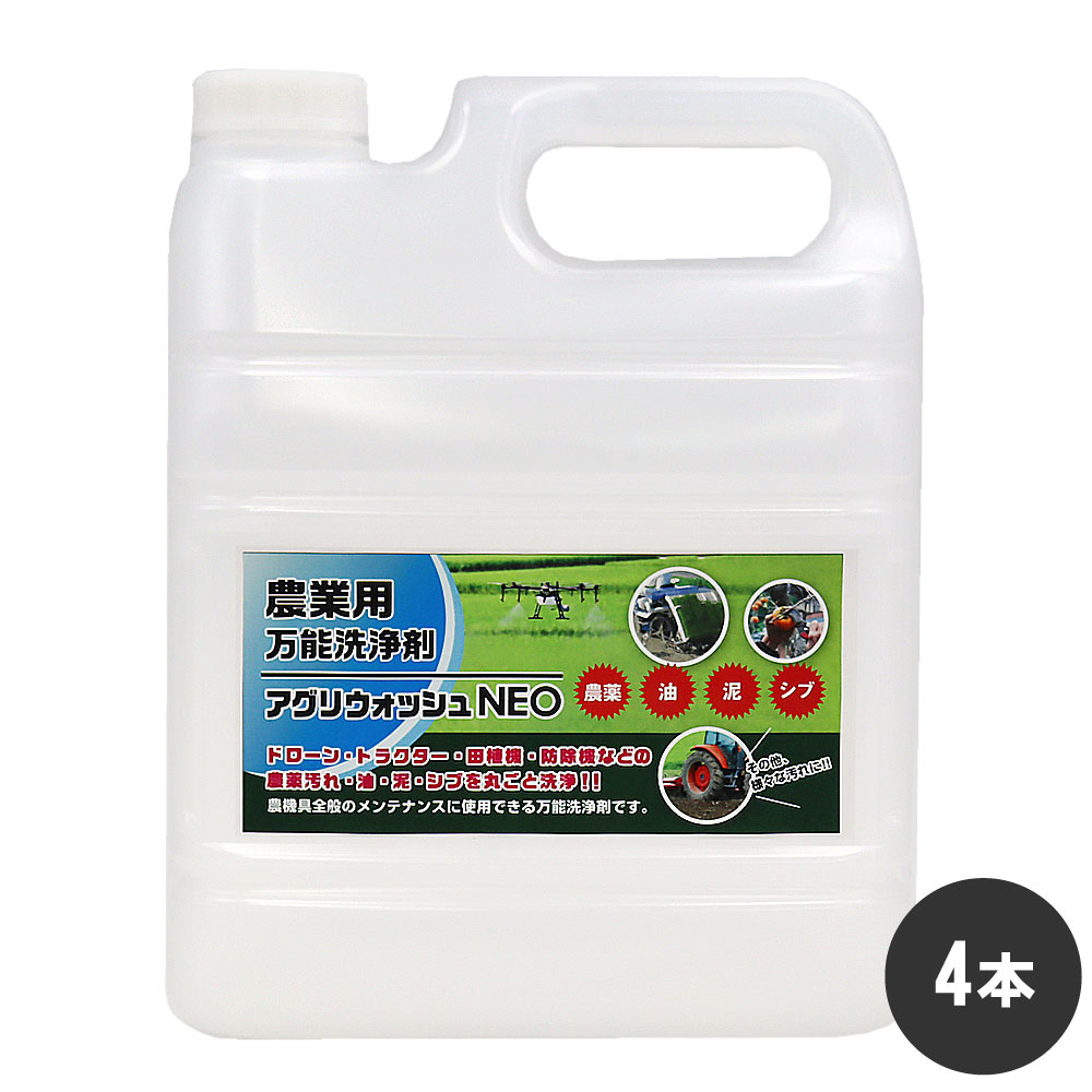 ドローン 洗浄 トラクター 農薬 汚れ アグリウォッシュNEO 4L×4本 農機具 田植機 防除機 油 泥 シブ 除去 農業用 万...