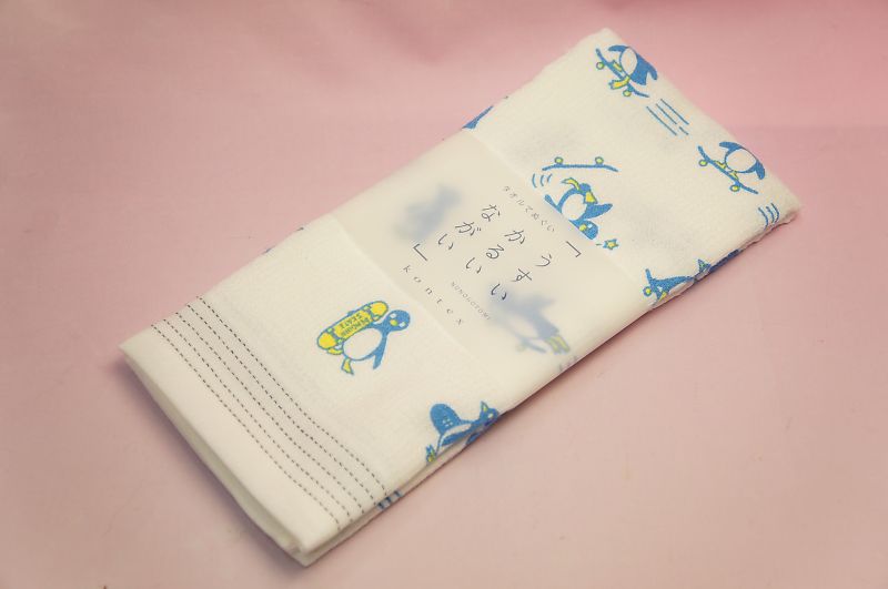 【在庫限り】てぬぐいたおる「スケボーペンギン」
