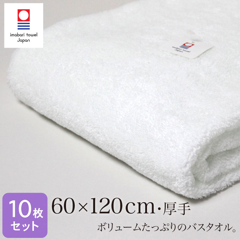 【今治タオル】 白バスタオル 厚手 1260匁 約60×120cm・10枚セット
