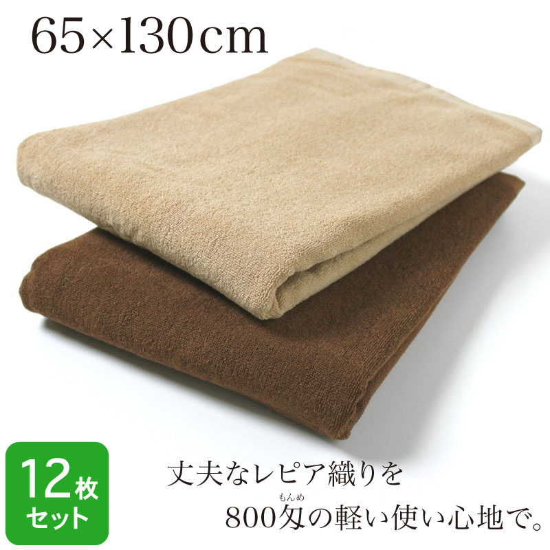 業務用 レピア織り スレン染め バスタオル・800匁 約65×130cm (ブラウン系)・同色12枚セット