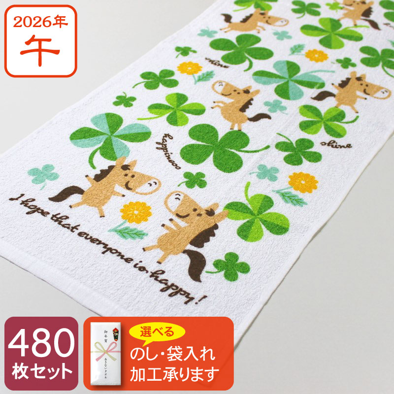 干支タオル お年賀タオル クローバー ウマ 2026年 午年 馬 粗品 ご挨拶・480枚セット