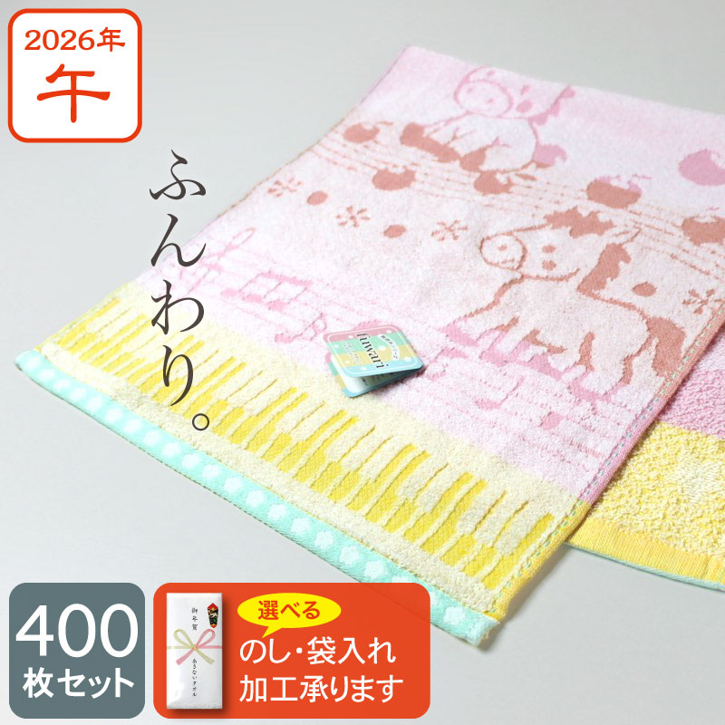 ふんわり干支タオル お年賀タオル fuwari/メロディ 2026年 午年 馬 粗品 ご挨拶・400枚セット