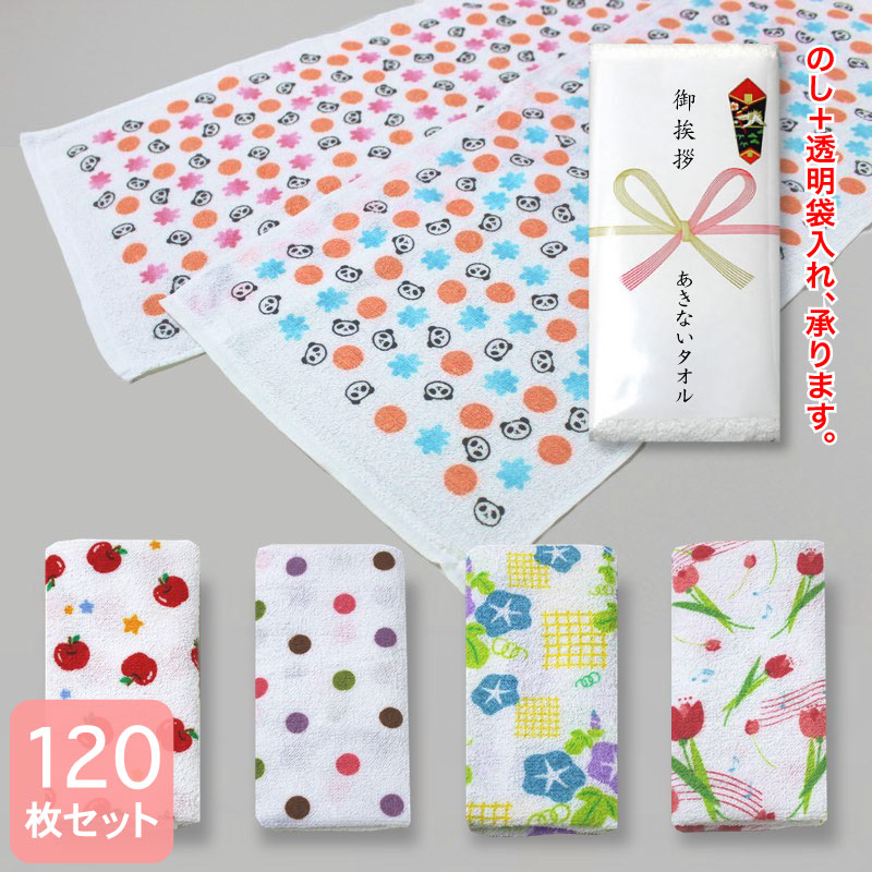 プリントフェイスタオル・同柄120枚セット 【粗品にも最適!】
