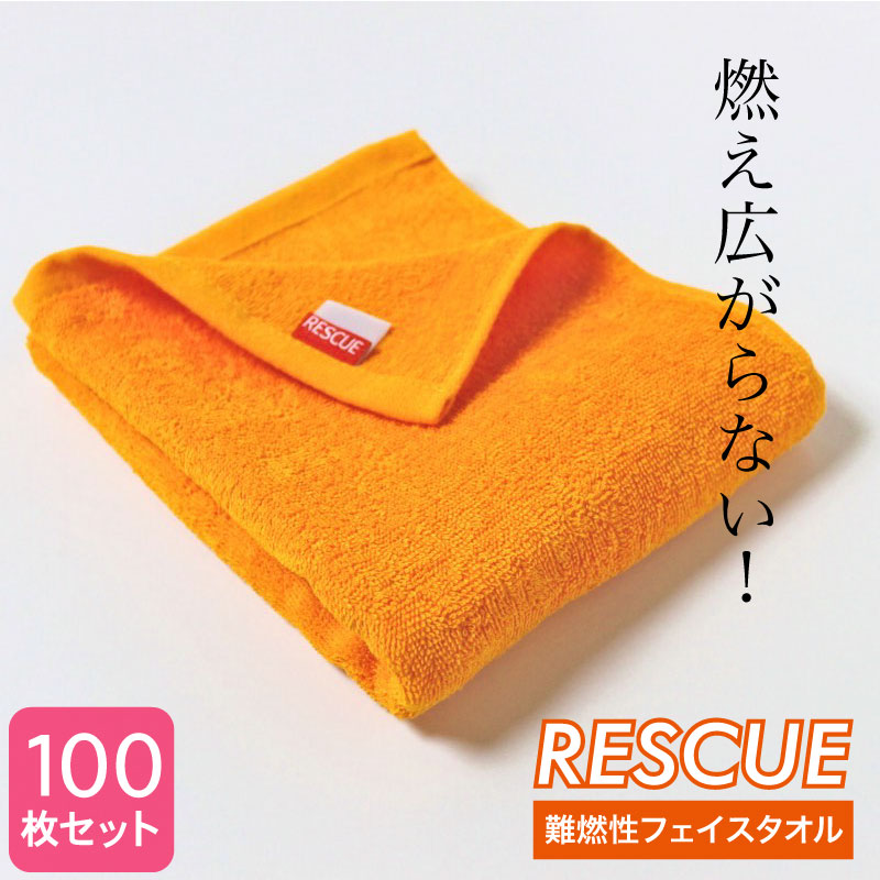 レスキュー 難燃性 フェイスタオル 約34×90cm 中国製・まとめ買い 100枚セット