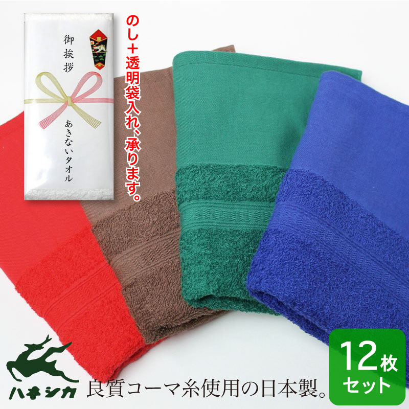 平地付き カラーフェイスタオル 220匁 日本製 泉州 ハネシカ 良質コーマ糸 (濃色)・同色12枚セット