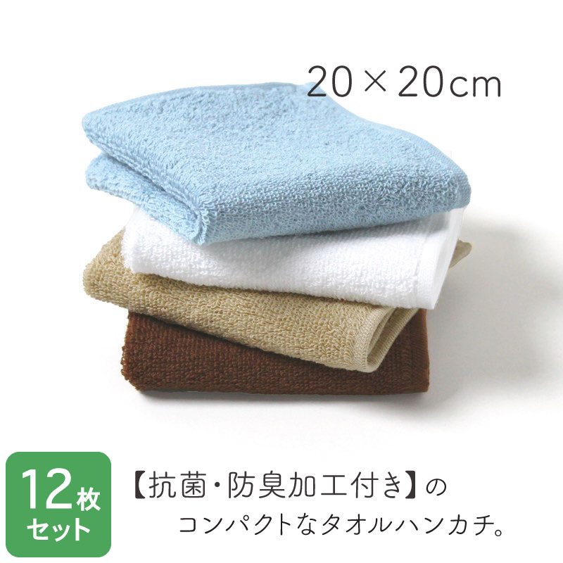 【抗菌・防臭加工】 ミニタオルハンカチ 約20×20cm・同色12枚セット
