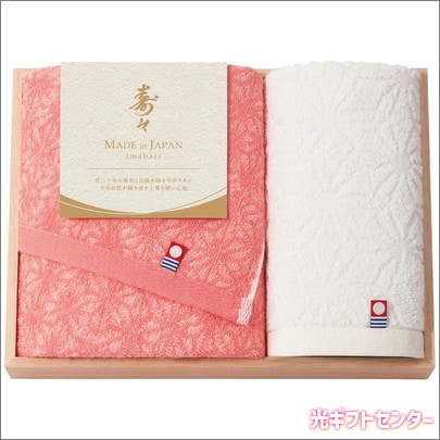 今治謹製 紋織タオル フェイス・ウォッシュタオルセット ピンク (木箱入) IM7725