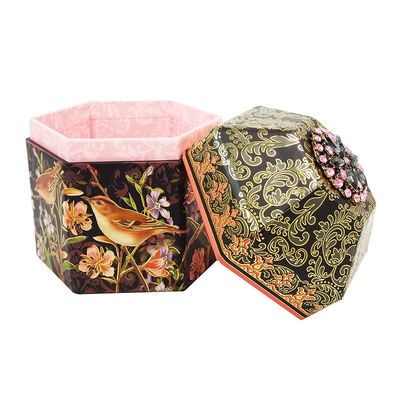 Punch Studio ヘキサゴンボックス ブローチ付き 【鳥×ブラック】