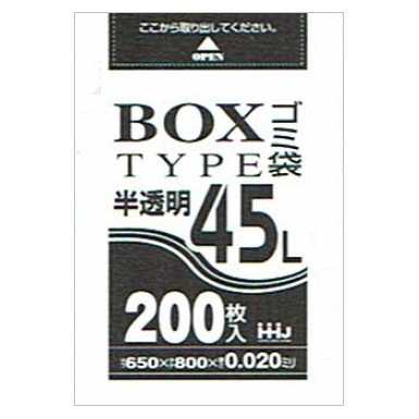 【個人宅配送可】BOX入ポリ袋 45L HDPE 0.02×650×800mm 半透明 200枚×4箱入(800枚) BH43【取...