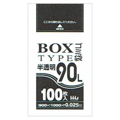 【法人様限定】BOX入ポリ袋 90L HDPE 0.025×900×1000mm 半透明 100枚×4箱入(400枚) BH95【...