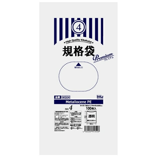 【法人様限定】規格袋 高強度素材配合(LL+Meta) No.4 0.03×90×170mm 100枚×200冊 MS04 3ケー...