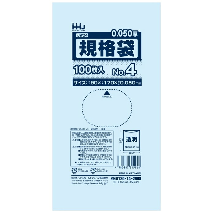 【法人様限定】規格袋 No.4 0.05×90×170mm 100枚×80冊 JW04 3ケースロット【メーカー直送・時間指定不可...