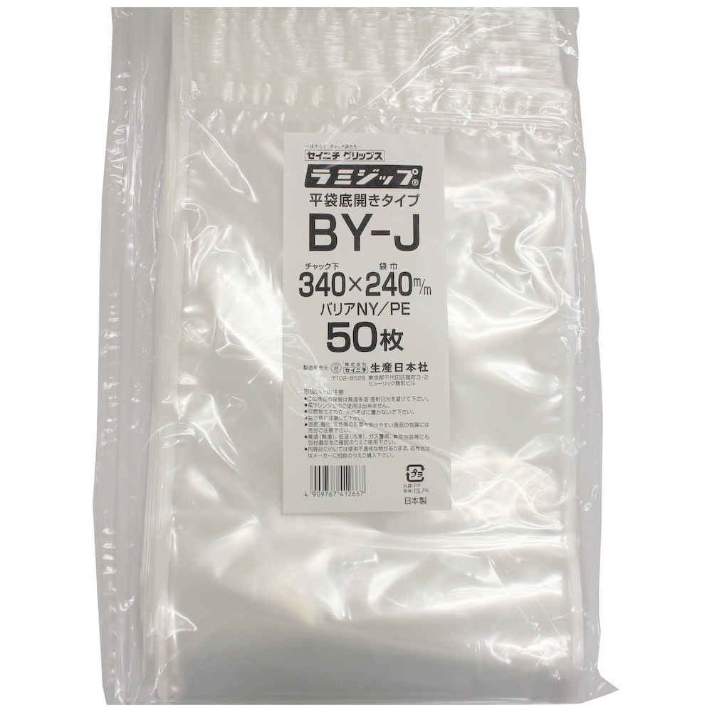 ラミジップ BY-J 底開き平袋バリアタイプ 340×240mm 50枚×2袋【専用倉庫直送】