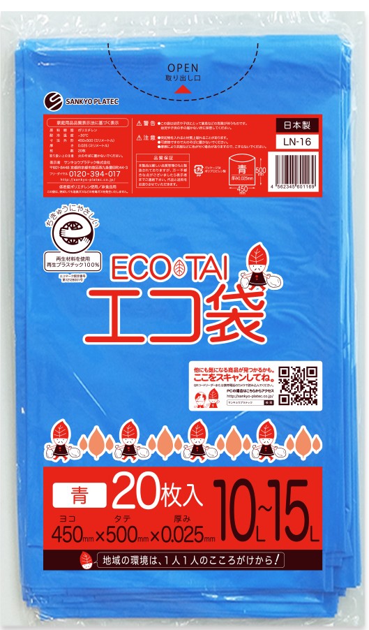 エコマーク付き ごみ袋 10~15リットル 青 0.025mm厚(20枚×60冊)