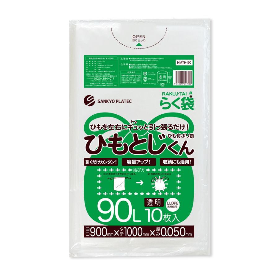 ひも付ポリ袋 90リットル 0.050mm厚 半透明(10枚×30冊)