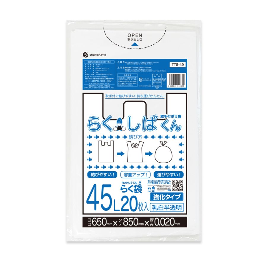 取手付ポリ袋 45リットル 0.020mm厚 乳白半透明(20枚×40冊)