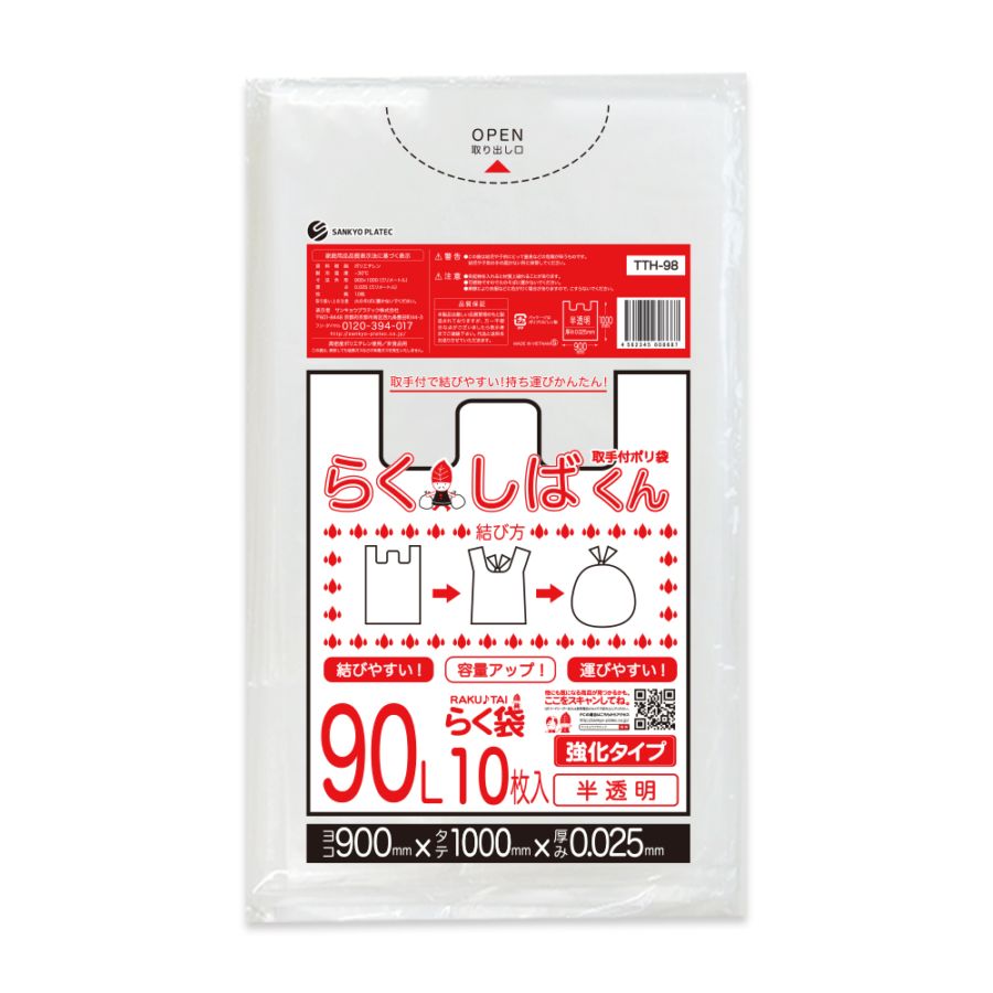 取手付ポリ袋 90リットル 0.025mm厚 半透明(10枚×40冊)