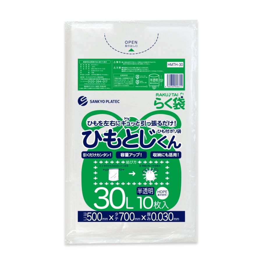 ひも付ポリ袋 30リットル 0.030mm厚 半透明(10枚×50冊)