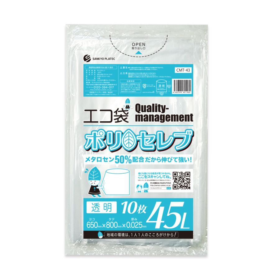 ポリセレブ 45リットル 0.025mm厚 透明(10枚×70冊)
