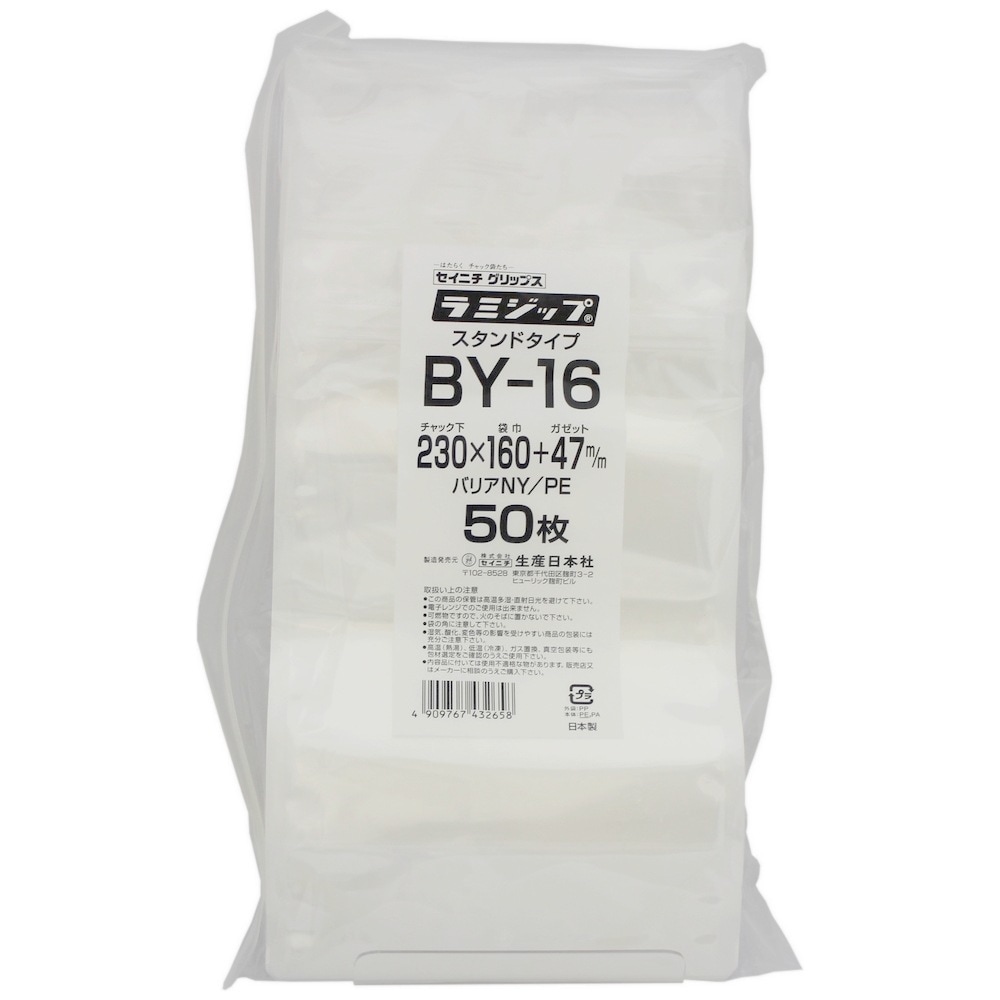 ラミジップ BY-16 バリアスタンドタイプ 230×160+47mm 50枚×16袋●ケース販売お徳用【メーカー直送】