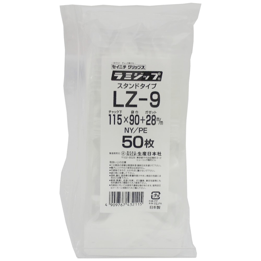 ラミジップ スタンドタイプ LZ-9 115×90+28mm 50枚×40袋●ケース販売お得用【メーカー直送】