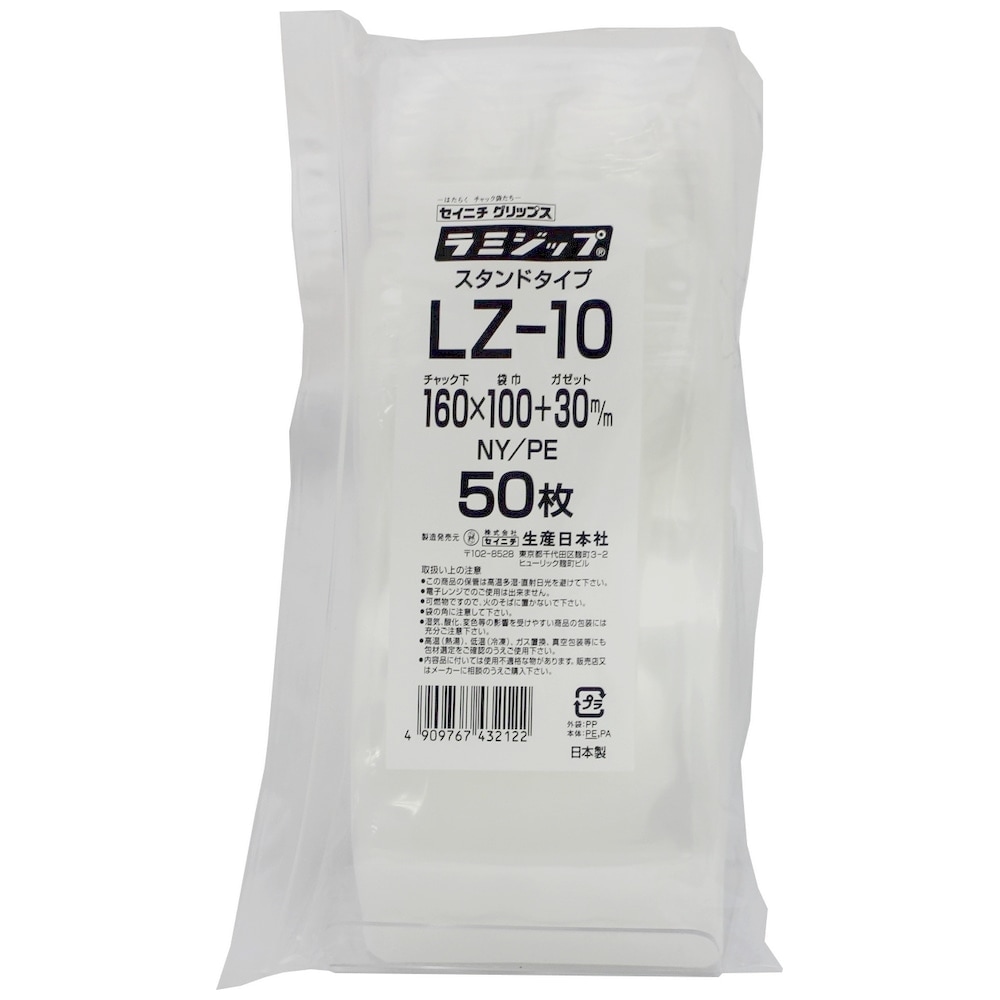 ラミジップ スタンドタイプ LZ-10 160×100+30mm 50枚×5袋【専用倉庫直送】
