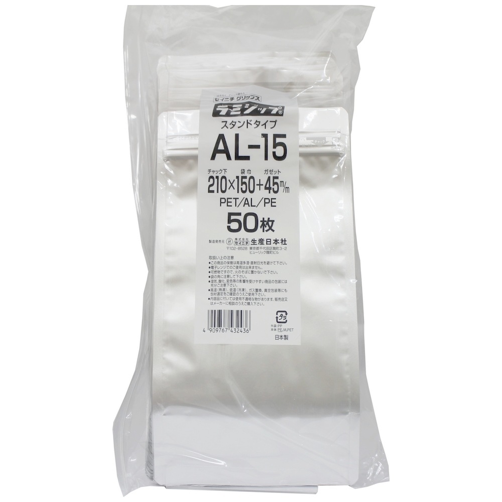 ラミジップ AL-15 スタンドタイプ アルミ 210×150+45mm 50枚×2袋【専用倉庫直送】
