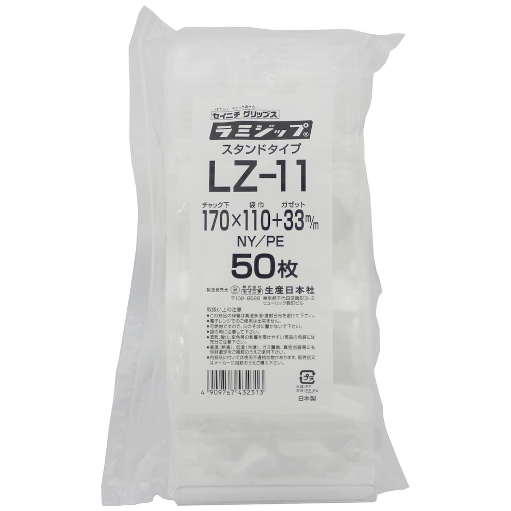ラミジップ スタンドタイプ LZ-11 170×110+33mm 50枚×5袋【専用倉庫直送】