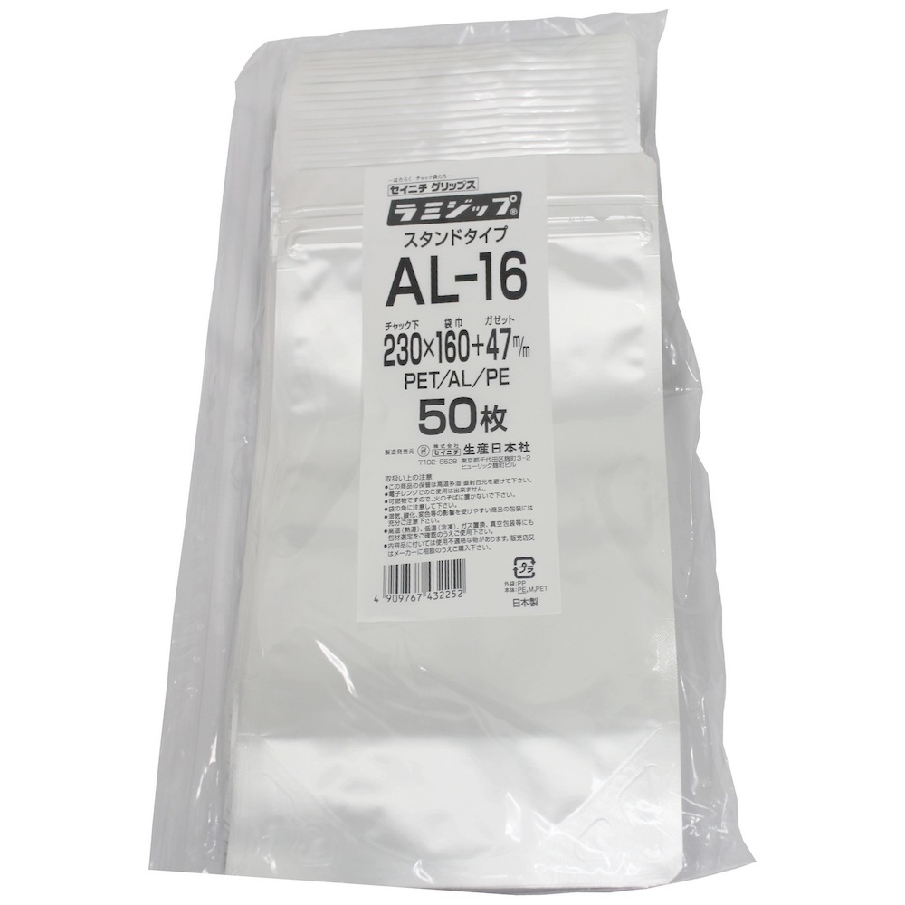 ラミジップ AL-16 スタンドタイプ アルミ 230×160+47mm 50枚×2袋【専用倉庫直送】