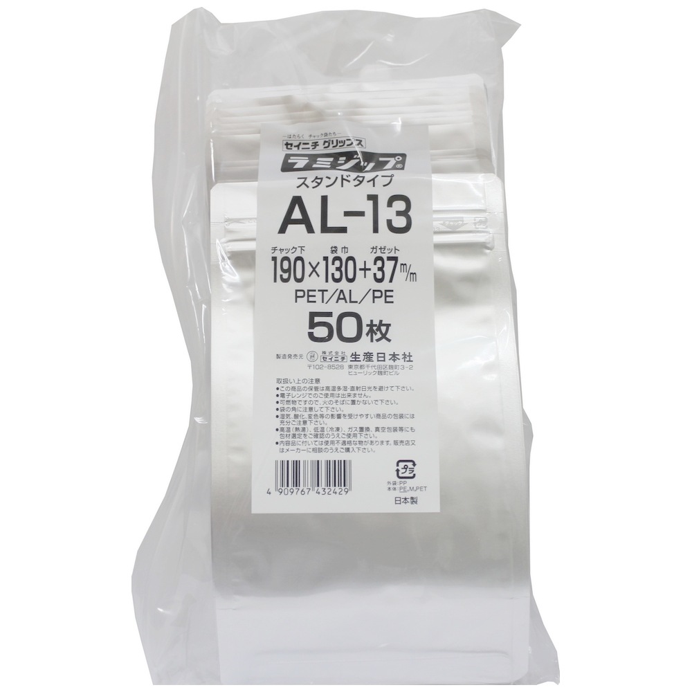 ラミジップ AL-13 スタンドタイプ アルミ 190×130+37mm 50枚×3袋【専用倉庫直送】