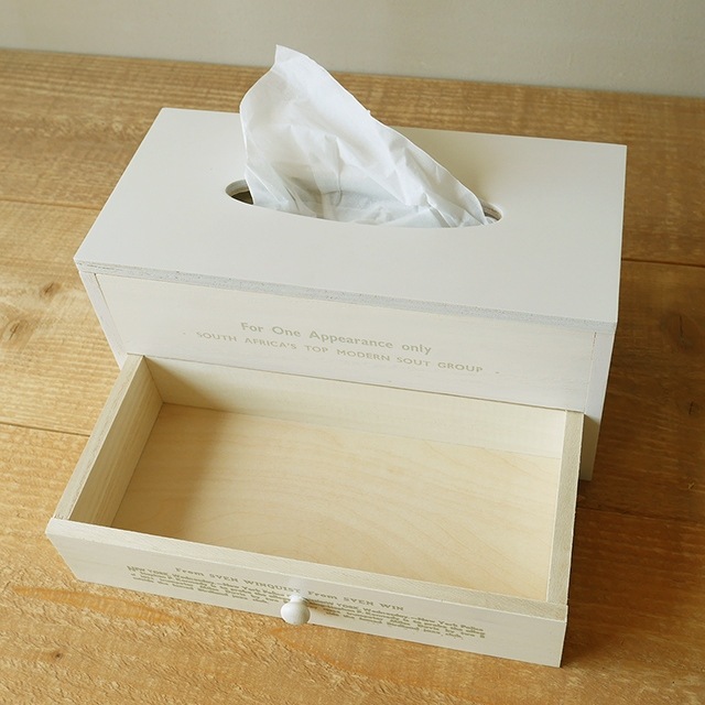 ティッシュケース 木製 引き出し小物入れ ホワイト