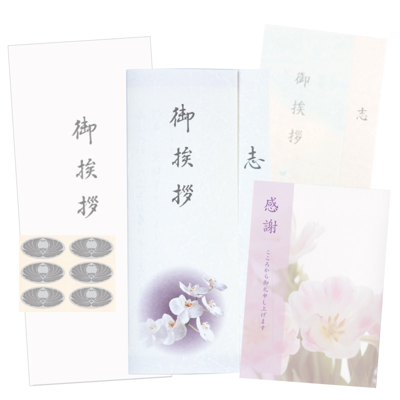 香典返し挨拶状 5点セット お礼の挨拶文章入り 印刷済み 忌明け 満中陰 法要 お返し