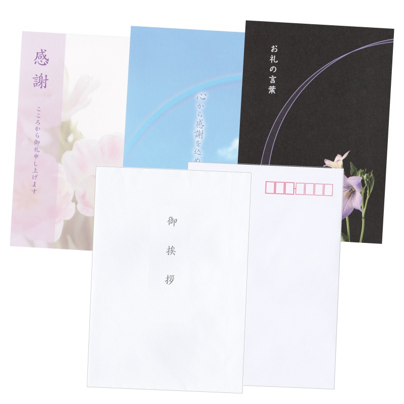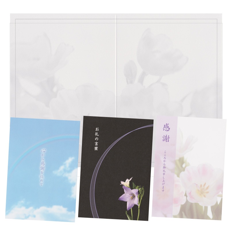 お礼カード 10枚 供花 弔電 供物 見舞い 4種より選択 葬儀後 忌明け 満中陰 お返し