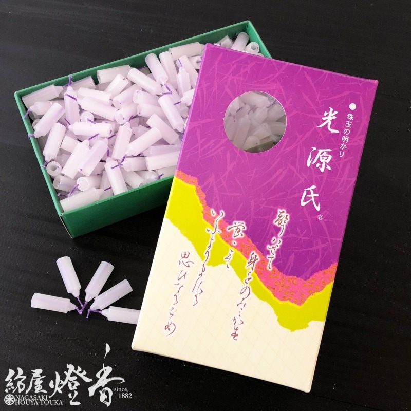 色芯ローソク『珠玉の明かり【光源氏(ひかるげんじ)/大箱[260本]】紙箱[紫芯/燃焼8分]』東海製蝋