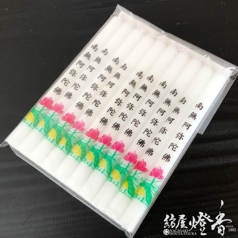 【アウトレット品】花/文字蝋燭『宗派別転写ローソク大ロー3号【南無阿弥陀仏】』燃焼100分
