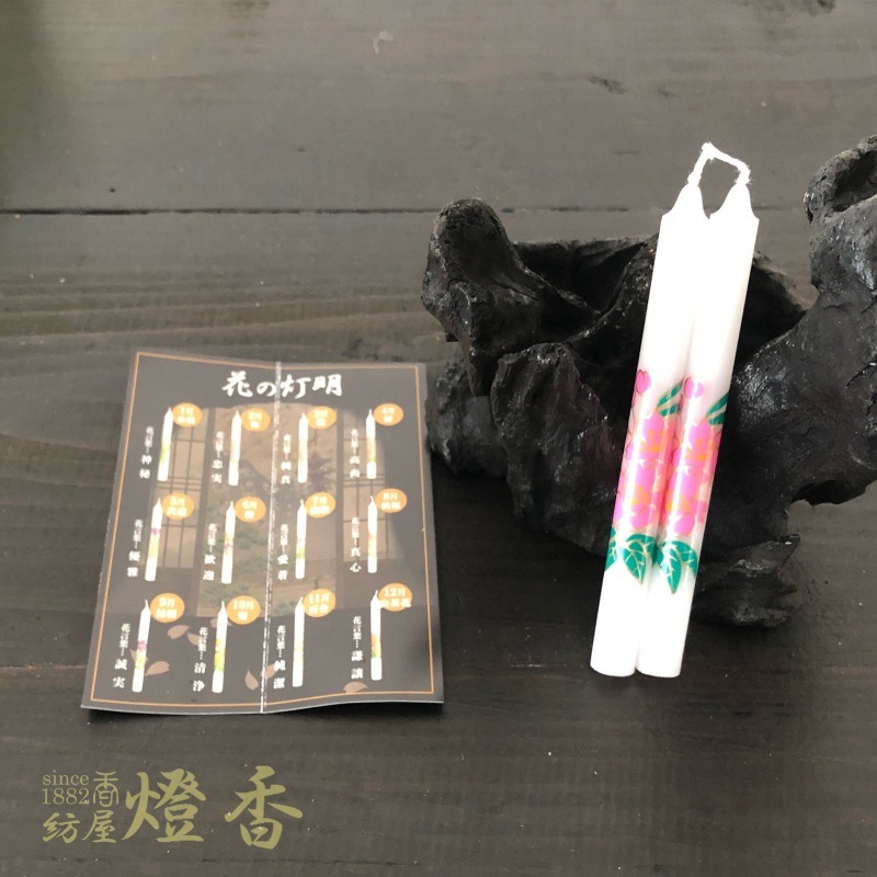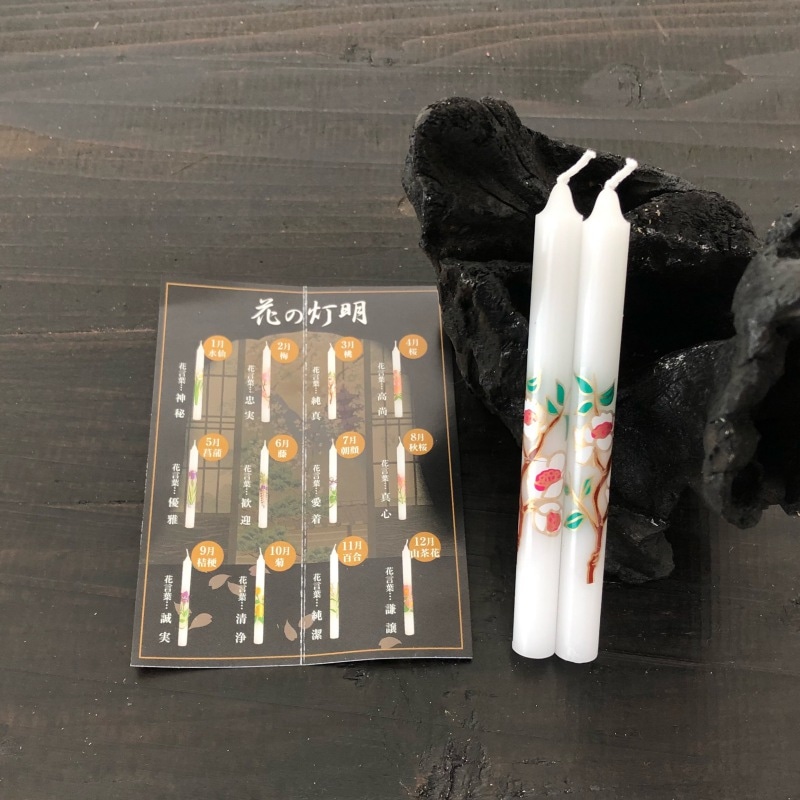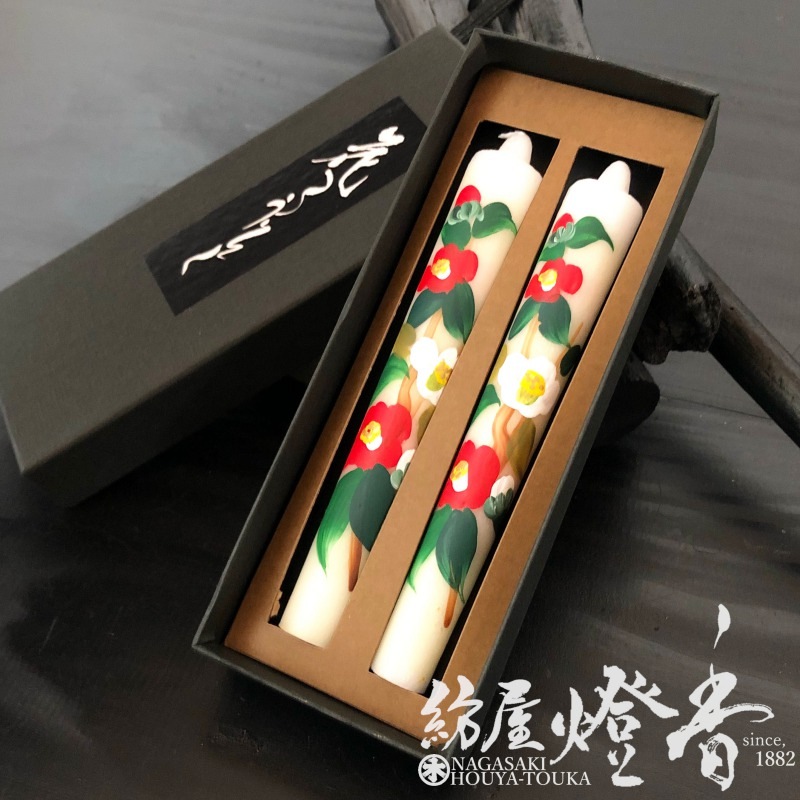 越後花ろうそく『季節折々の花【椿(つばき)/12cm/2本入】洋蝋燭棒型[燃焼2時間]』小池ろうそく店