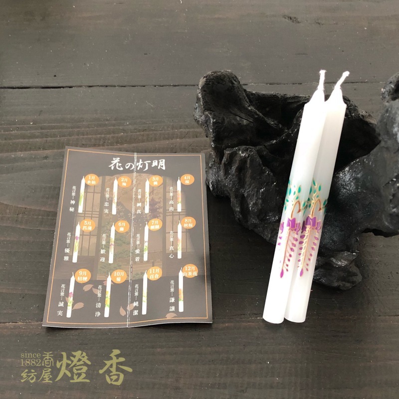越後花ろうそく『季節折々の花【藤(ふじ)/12cm/2本入】洋蝋燭棒型[燃焼2時間]』小池ろうそく店
