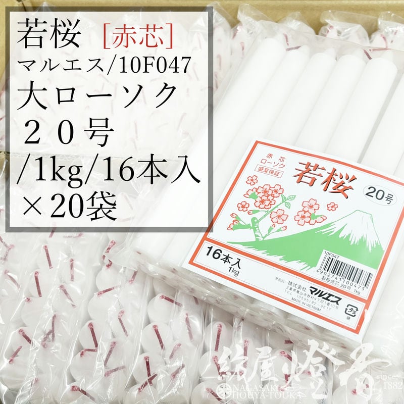 ケース/20袋入『丸形色芯ローソク【若桜(わかざくら)・20号短寸/1kg[16本]/赤芯】袋詰[燃焼6時間40分]』マルエス