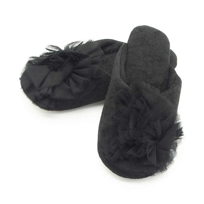 ふわふわ チュチュ スリッパ ルームシューズ (ブラック)