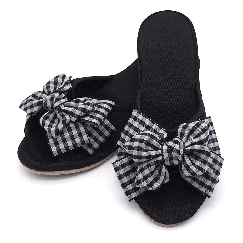 美脚 リボンスリッパ Lサイズ (ギンガムチェック×ブラック)