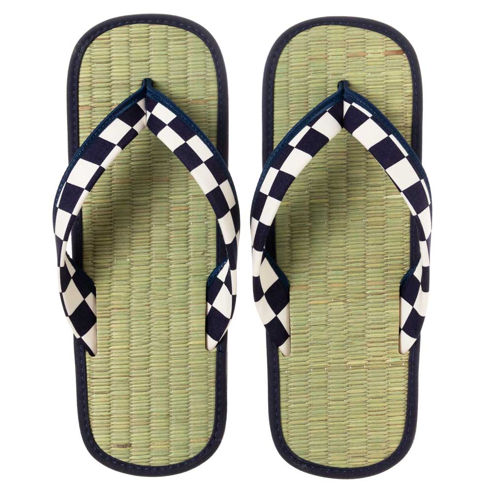 い草たたみ雪駄・市松B(フリーサイズ) ゴム底草履 いつも足裏で畳を感じられるスリッパ・サンダル 暑い夏場も快適な足下に