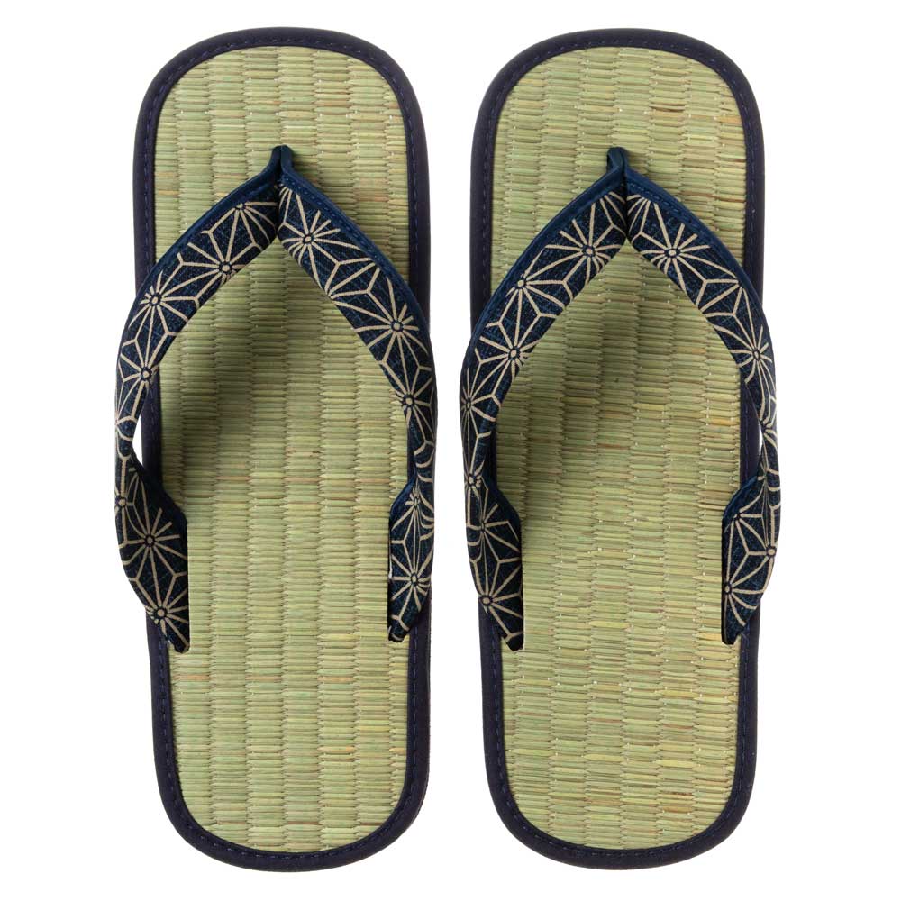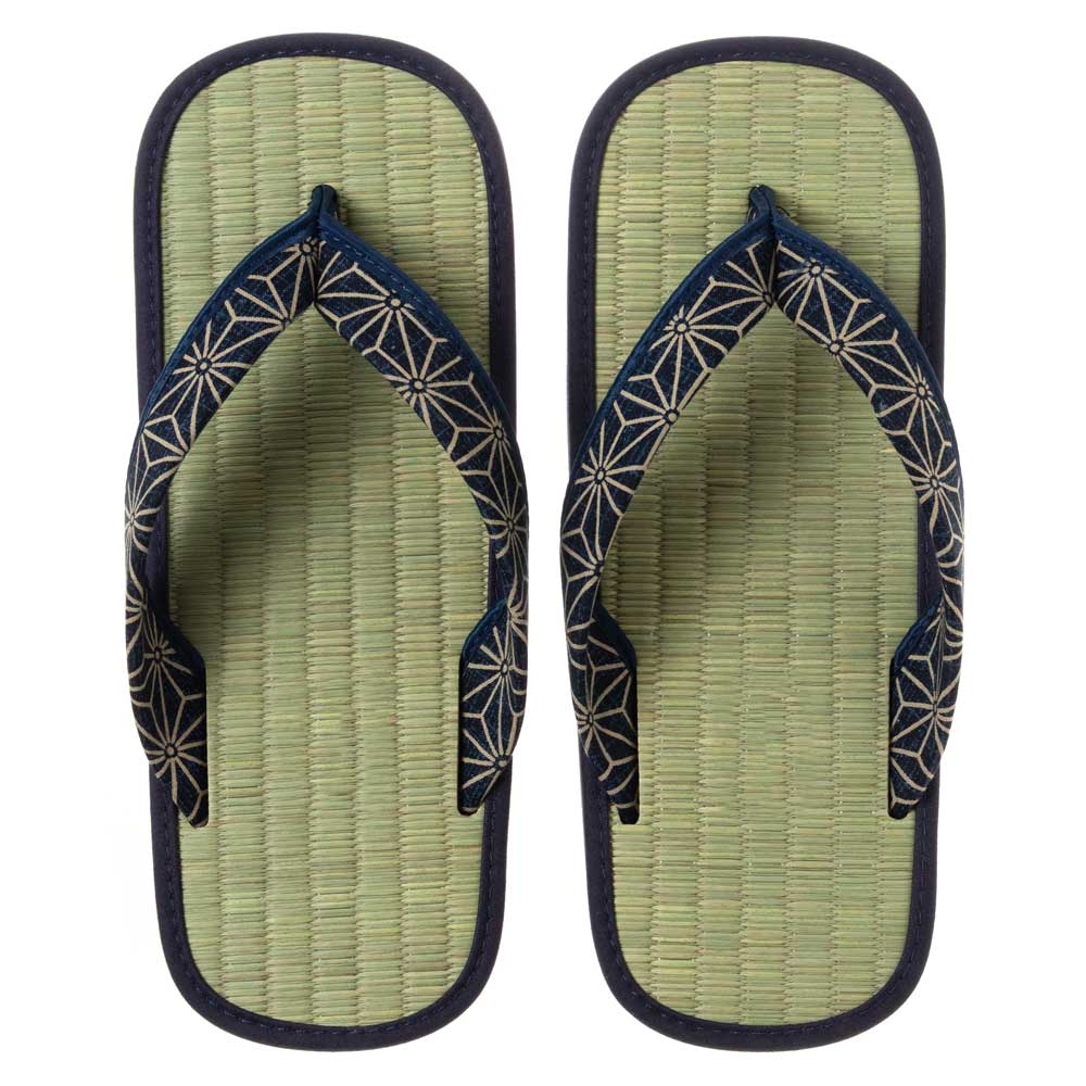 い草たたみ雪駄・麻の葉B(フリーサイズ) ゴム底草履 いつも足裏で畳を感じられるスリッパ・サンダル 暑い夏場も快適な足下に