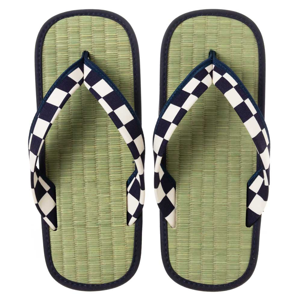 い草たたみ雪駄・市松B(フリーサイズ) ゴム底草履 いつも足裏で畳を感じられるスリッパ・サンダル 暑い夏場も快適な足下に