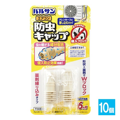 バルサンエアコン防虫キャップ 2コ入×10個セット【レック LEC】エアコンの排水ホースに差し込むだけ!薬剤練り込みタイプ 不快害...